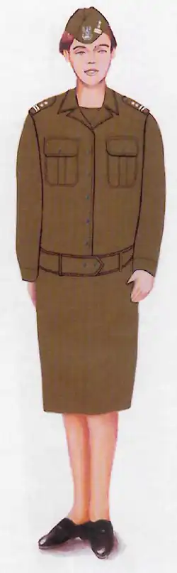 Furażerka w kolorze khaki stanowi wyjściowe nakrycie głowy żołnierzy-kobiet. Umieszczony jest na niej orzeł wykonany techniką termonadruku na tkaninie khaki[2] oraz oznaka stopnia wykonana w takim sam sposób[3].