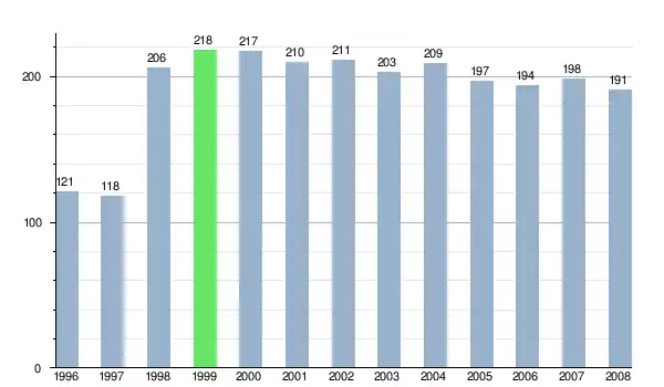 Według danych z dnia 31 grudnia 2012, wieś zamieszkiwało 199 osób, w tym 102 kobiety i 97 mężczyzn[6].