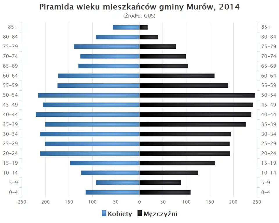 - Piramida wieku mieszkańców gminy Murów w 2014 roku[1].