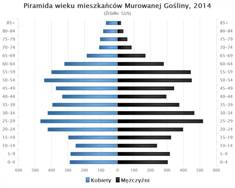 - Piramida wieku mieszkańców Murowanej Gośliny w 2014 roku[11].