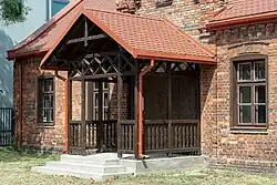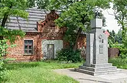 ![]() Budynek "Murowanki" w Wawrze, a przed nim pomnik poświęcony Piłsudskiemu i bohaterom Wawra 1918−1920 | |
