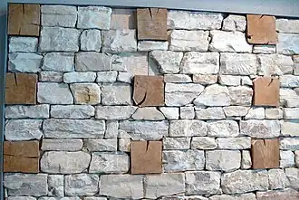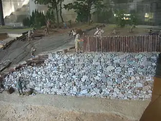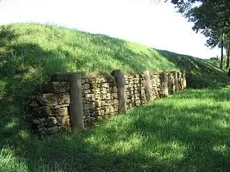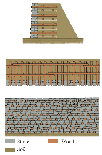 Wg wyników badań archeologicznych była to konstrukcja zbudowana z drewnianych belek złączonych wielkimi żelaznymi gwoździami i wypełniona kamieniami i żwirem. Końce belek były na sucho zamocowane do zewnętrznej i wewnętrznej ściany. Czoło było obłożone kamieniami, a do wewnętrznej strony przylegał ziemny (gliniany) nasyp.