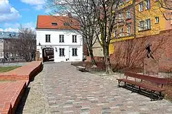 - Dwie tablice pamiątkowe Tchorka (na murze wewnętrznym oraz przy ulicy Wąski Dunaj 7)
