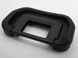 Muszla oczna zazwyczaj nie występuje w komplecie z samym aparatem, toteż trzeba ją dokupić oddzielnie. Elastyczna muszla oczna przylega idealnie do oczodołu. Dzięki niej fotografujący ma w polu widzenia jedynie kadr, a sam aparat może trzymać trochę wygodniej – nie przyciskając go aż tak bardzo do oka. Jest to szczególnie przydatne przy silnym oświetleniu od tyłu oraz przy jasnej obudowie aparatu.