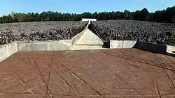 W północnej części byłego obozu, w miejscach gdzie palono zwłoki ofiar, wzniesiono cztery betonowe „pylony”. Te masowe groby, które udało się odnaleźć, oznaczono rzędem betonowych urn z metalowymi pokrywami symbolizującymi płomienie[22]. Na początku lat 80. miejsce pamięci uzupełniono o tablicę, która informowała, że w obozie zamordowano „600 000 Żydów i około 1500 Polaków[a] za pomoc udzielaną Żydom”[25].