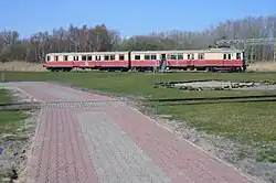 ![]() Teren muzeum, widoczne eksponaty i budynek dawnej elektrowni (obecnie budynek muzeum) | |
