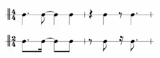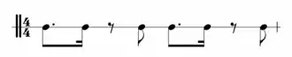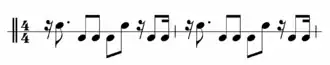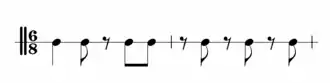 W candomblé clave w metrum 6/8 jest najczęściej używanym rytmem dzwonków: