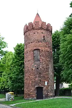- Baszta Prochowa – zbudowana na planie koła, na przełomie XIV i XV w. gotycka, ceglana baszta obronna. Zwieńczenie wieży w postaci krenelażu i stożkowego dachu pochodzi z XIX w. i nie musi odpowiadać pierwotnemu wyglądowi baszty. Wejście do baszty znajduje się na poziomie dawnego muru obronnego.