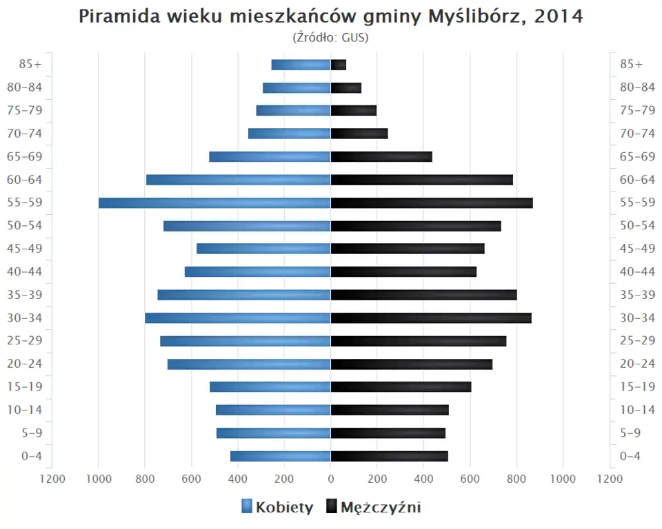 - Piramida wieku mieszkańców gminy Myślibórz w 2014 roku[6].