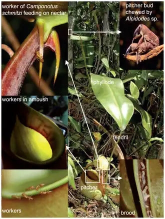 - 1 2 V. Bazile, JA. Moran, G. Le Moguédec, DJ. Marshall i inni. A carnivorous plant fed by its ant symbiont: a unique multi-faceted nutritional mutualism.. „PLoS One”. 7 (5), s. e36179, 2012. DOI: 10.1371/journal.pone.0036179. PMID: 22590524.