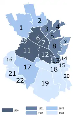 Miasto nieformalnie dzieli się na 22 dzielnice: