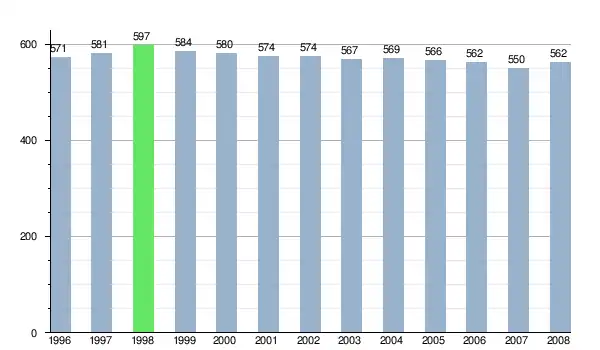 Według danych z dnia 31 grudnia 2012, wieś zamieszkiwało 540 osób, w tym 274 kobiety i 266 mężczyzn[6].
