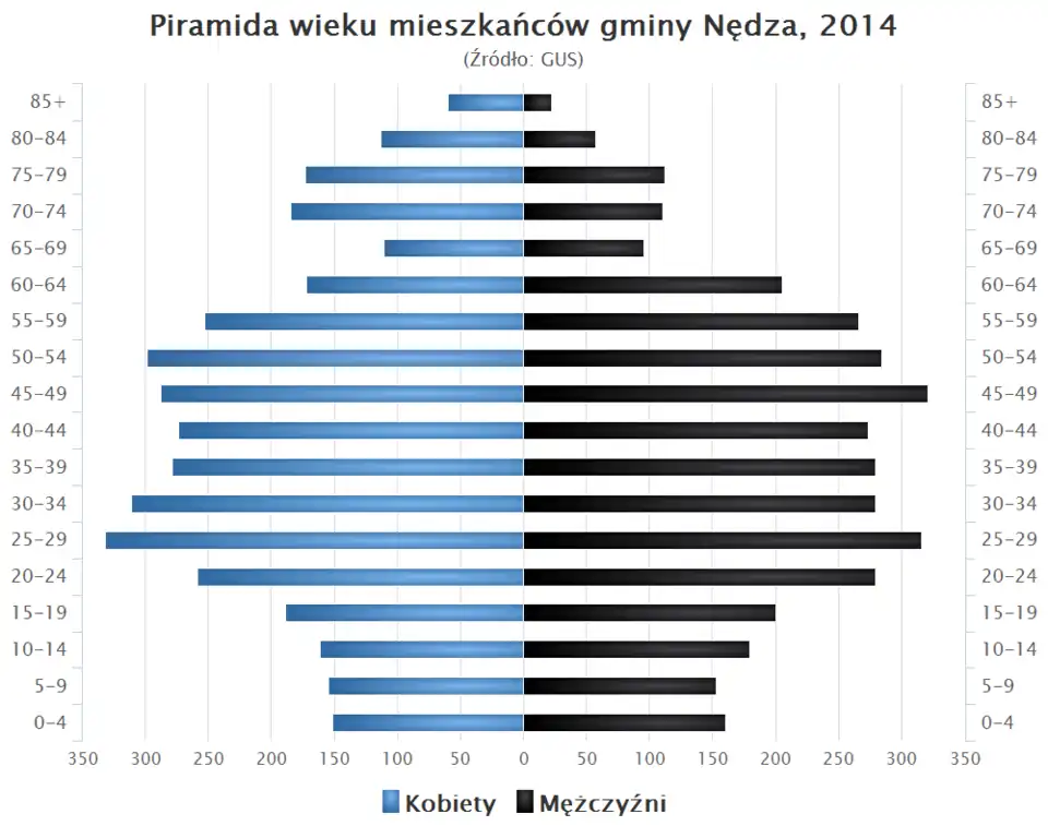 - Piramida wieku mieszkańców gminy Nędza w 2014 roku[1].
