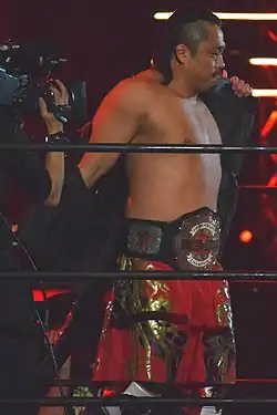 ![]() Były mistrz Minoru Suzuki wraz z pasem mistrzowskim | |||||||||||||||||||
