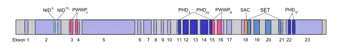 - ↑ Huang N, vom Baur E, Garnier JM, Lerouge T, Vonesch JL, Lutz Y, Chambon P, Losson R. Two distinct nuclear receptor interaction domains in NSD1, a novel SET protein that exhibits characteristics of both corepressors and coactivators. „EMBO J”. 17, s. 3398–3412, 1998. PMID: 9628876.