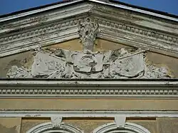 - ↑ Opis współczesny jest skonstruowany zgodnie z obecnymi zasadami heraldyki. Zobacz: Blazonowanie