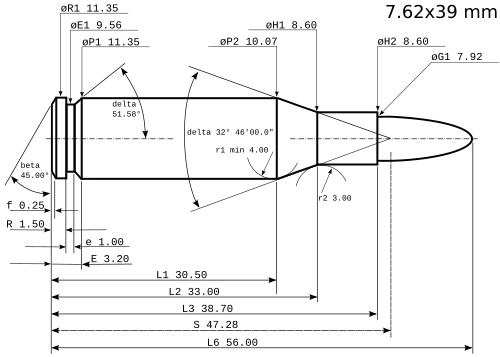 7,62 × 39 mm wz. 43 – radziecki nabój pośredni, zaprojektowany podczas II wojny światowej.