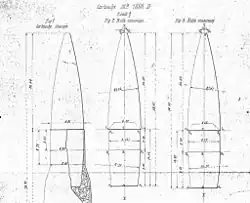 - Nabój z pociskiem zapalającym typu Partiot – pocisk zapalający typu Partiot miał kształt zbliżony do pocisku mle 1886. Płaszcz pocisku wykonany ze stopu CuZnPb. Wewnątrz pocisku znajdował się ładunek białego fosforu.
