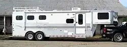 Naczepa wykorzystywana do przewozu koni z gęsią szyjką podczepiona do pickupa. - naczepa do transportu samochodów wyścigowych (np. bolidów Formuły 1)
