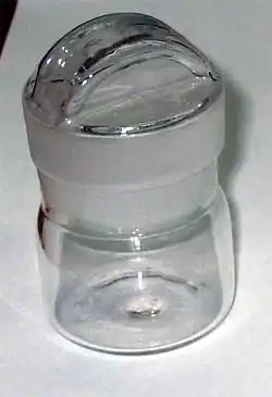 - naczynko w kształcie małego, dość płaskiego kubka szklanego ze szlifem płaskim, które jest zaopatrzone w szlifowaną pokrywkę. W naczynku tym odważa się zwykle substancje higroskopijne lub rozkładające się pod wpływem wilgoci lub w kontakcie z powietrzem. Procedurę odważania przeprowadza się w atmosferze azotu, po czym przenosi się zamknięte naczynko z odważoną substancją i jak najszybciej opróżnia je wsypując jednym, szybkim ruchem jego zawartość do kolby reakcyjnej lub miarowej.
