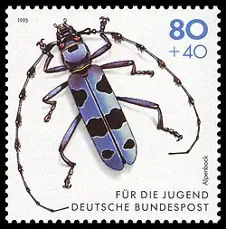 Nadobnica alpejska (Rosalia alpina) – chrząszcz z rodziny kózkowatych.