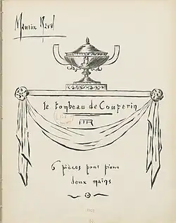 Nagrobek Couperina składa się z sześciu części: Prélude, Fugue, Forlane, Rigaudon, Menuet, Toccata. Każda z nich zadedykowana jest jednemu z poległych podczas I wojny światowej przyjaciół Ravela. Dlatego nastrój miniatur, przeplatanych wprawdzie pogodnymi akcentami, ogólnie ma nostalgiczny wydźwięk.