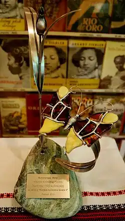 - ↑ Artur Bądkowski, DIONISIOS STURIS LAUREATEM NAGRODY BURSZTYNOWEGO MOTYLA [online], Biblioteka Raczyńskich, 8 sierpnia 2022 [dostęp 2024-09-14] (pol.).