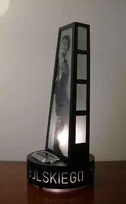 ![]() Statuetka Nagrody im. Zbyszka Cybulskiego. Projekt – Paweł Althamer | |