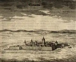 Kiedy Turcy zajęli w 1571 r. zamek, mieszkańcy schronili się w ufortyfikowanym mieście, które zostało zajęte przez Turków dopiero w roku 1600. Zamek był siedzibą tureckiego wilajetu do 1690 roku. Po wycofaniu się Osmanów wiedeńska Rada Wojenna kazała w 1702 r. zniszczyć zamek, a do opustoszonego miasta zostali sprowadzeni nowi osadnicy z Niemiec, Chorwacji i Serbii.