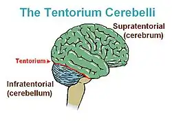 We wcięciu namiotu móżdżku znajduje się śródmózgowie[2].