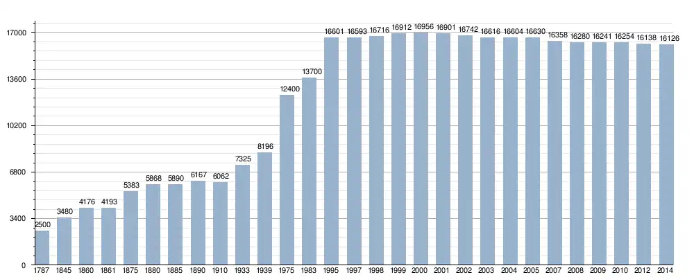 Według danych GUS z 1 stycznia 2024 r. miasto liczyło 16 818 mieszkańców[1].