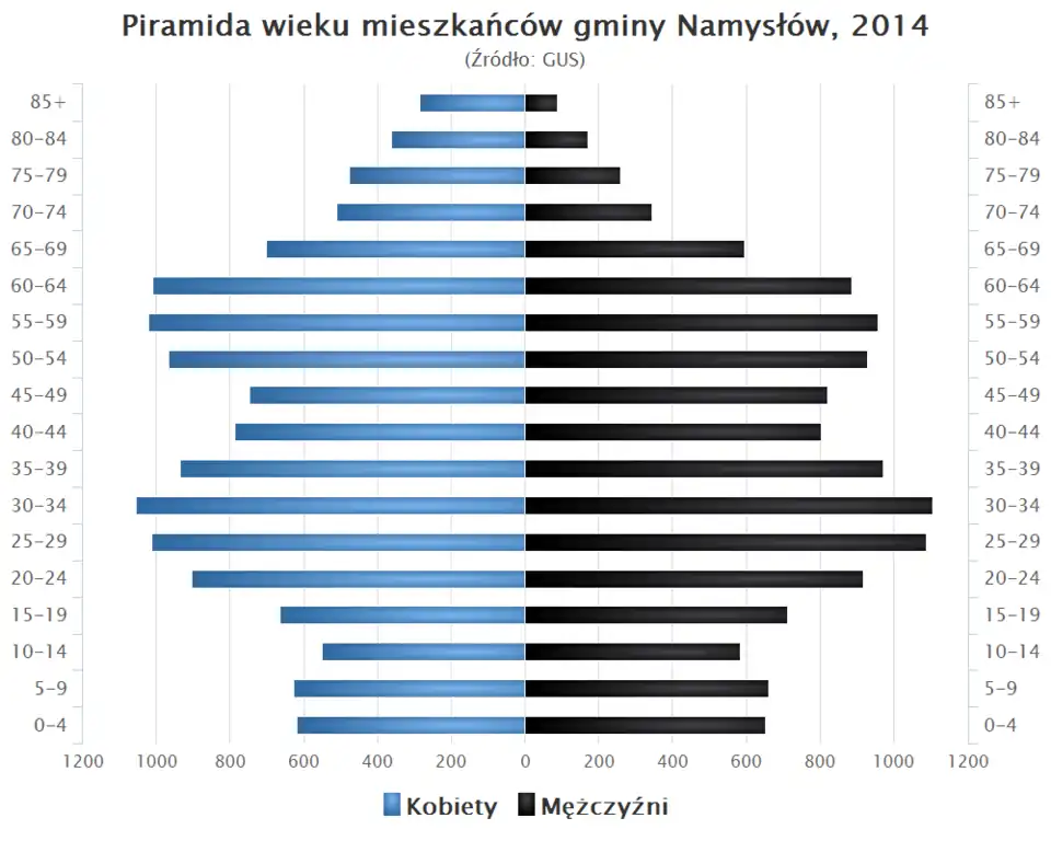 - Piramida wieku mieszkańców gminy Namysłów w 2014 roku[1].