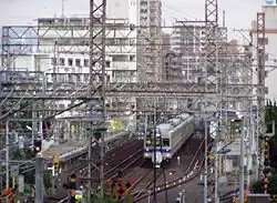 - ↑ 川島令三 Ryozō Kawashima, 関西圏通勤電車徹底批評 上 Kansai-ken tsūkin densha tettei hihyō, 草思社 Soshisha, Tōkyō, 2004, cz. 1: ISBN 4-7942-1359-X, s. 98. nn.