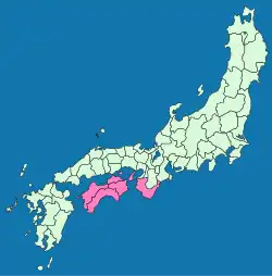 Nankaidō obejmowało ziemie prowincji Kii i Awaji sprzed okresu Meiji, a także cztery prowincje Awa, Sanuki, Tosa i Iyo, które tworzyły Sikoku[4].
