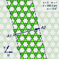 gdzie jest stałą sieciową grafenu. Dla kąta chiralnego zachodzi równość[23]: