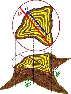 Napływy korzeniowe i zgrubienie odziomkowe często traktowane są jako jedna wada drewna, gdyż trudno jest określić granicę występowania i wpływu jednej wady i drugiej. Napływy korzeniowe biorą swój początek od korzeni, stopniowo przechodzą w pień (często u świerków i grabów). Zgrubienie odziomkowe ma podobny charakter, lecz nie można w nim zauważyć wpływu korzeni.
