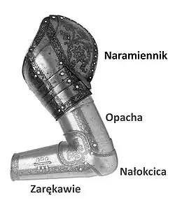 W drugiej połowie XVI wieku i w wieku XVII, w Europie Zachodniej, wraz ze wzrostem znaczenia broni palnej i postępującą redukcją coraz mniej efektywnej zbroi, zwiększyła się różnorodność form: w części rezygnowano z wszystkich dodatkowych elementów poza napierśnikiem, czasem dodawano jeden lub dwa naramienniki, parę nabiodrków itp., stopniowo jednak rezygnując ze zbroi w ogóle[20]. Wykształcona właśnie w tym okresie polska zbroja husarska też składała się na ogół z ograniczonej liczby części: hełmu, kirysu, obojczyka i naramienników, rzadziej nabiodrków[21].