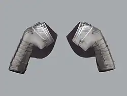 Płytowy napierśnik i naramienniki, wyraźnie niesymetryczne