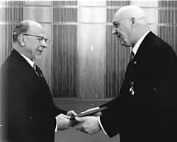- ↑ Według wypowiedzi Stalina z marca 1948 na tym etapie budowy komunizmu należało „usunąć granicę między byłymi nazistami i nienazistami”, zob. Klaus Schroeder: Der SED-Staat. Partei, Staat und Gesellschaft 1949–1990. München: Propyläen, 2000, s. 42. (niem.).