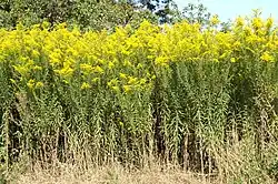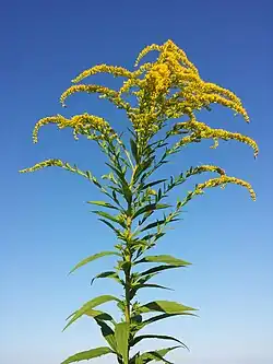 Nawłoć kanadyjska (Solidago canadensis L.) – gatunek rośliny wieloletniej z rodziny astrowatych. Pochodzi z Ameryki Północnej[4]. Jako uciekinier z upraw rozprzestrzenił się w Europie. W Polsce jest rozpowszechniony w siedliskach półnaturalnych i synantropijnych (gatunek synantropijny). Status gatunku w polskiej florze: kenofit, agriofit. Dominując w zajmowanych siedliskach wypiera gatunki rodzime.