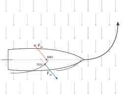 Równowaga kursowa jachtu zależy od wzajemnego położenia środka ożaglowania (SOż) oraz środka bocznego oporu SBO. W ogólności nawietrzność występuje, gdy SOż przesunięty jest w kierunku rufy względem SBO. Powstaje wtedy moment powodujący ostrzenie jachtu.