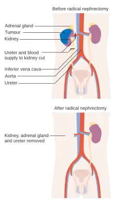 Nefrektomia – chirurgiczne usunięcie nerki. Wskazaniami do tego zabiegu mogą być m.in. nowotwór złośliwy nerki, zaburzenie funkcji nerki w wyniku upośledzenia ukrwienia – niedokrwienie lub zawał nerki, ciężkie nadciśnienie naczyniowonerkowe[1][2], ciężkie wodonercze (np. w przebiegu uropatii zaporowej w kamicy nerkowej) oraz roponercze, a także, rzadziej w ostatnich latach, gruźlica nerki. Wykonywana również w celu pobrania narządu do transplantacji. Jeśli druga nerka jest zdrowa, nefrektomia nie powoduje zaburzeń w produkcji moczu i nie upośledza sprawności fizycznej chorego. Operacja może być wykonywana z dostępu przezotrzewnowego jak i lędźwiowego (pozaotrzewnowego).