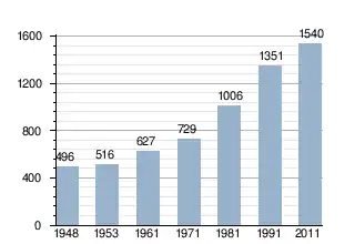W latach 1948–2011 liczba ludności systematycznie wzrastała od 496 (15 marca 1948) do 1540 (1 kwietnia 2011)[3].