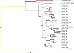 - 1 2 3 4 Julia S Bennett i inni, Independent evolution of the core and accessory gene sets in the genus Neisseria: insights gained from the genome of Neisseria lactamica isolate 020-06, „BMC Genomics”, 11, 2010, s. 652, DOI: 10.1186/1471-2164-11-652, ISSN 1471-2164, PMID: 21092259, PMCID: PMC3091772 [dostęp 2020-05-03].