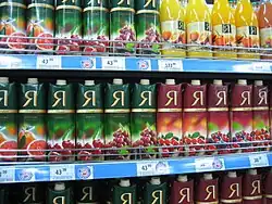 Zdjęcie półki sklepowej z sokami i nektarami