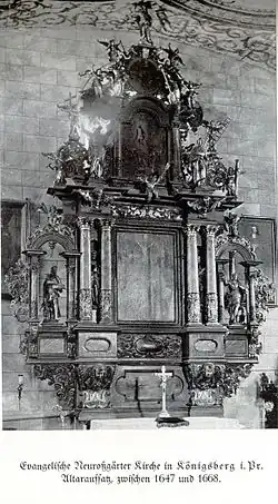 Kamień węgielny pod kościół (niem. Neurossgärter Kirche) na nowym cmentarzu położono 31 maja 1644, poświęcenie nastąpiło 5 grudnia 1647. Była to ceglana budowla o rzucie prostokąta, o formach kontynuujących tradycje gotyku. W latach 1685–1695 od zachodu dobudowano smukłą wieżę zwieńczoną ażurowym hełmem (łączna wysokość 83,64 m). Wyposażenie wnętrza było barokowe: bogaty zespół malowideł stropowych, rzeźbiony ołtarz ze sceną Ukrzyżowania (ok. 1647–1652) i kazalnica z 1648. Duży krucyfiks z 1676 był pierwszym znanym dziełem Izaaka Rigi. Organy zbudował Siegmund Casparini (1737). W 1945 r. kościół uległ zniszczeniu, ruiny rozebrano 1975. Obecnie znajduje się tu skwer.