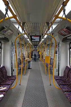 Stosowany jest mieszany układ foteli (prod. Kiel[1]) – w większości składu siedzenia są wzdłuż okien, a jedynie w członach skrajnych w układzie grupowym. Szerokość przejścia w części pasażerskiej to 800 mm. W jednym ze skrajnych wagonów znajdują się po dwa stanowiska do mocowania wózków inwalidzkich oraz podnośnik ułatwiający wsiadanie osobom na wózkach[1][12]. Pojazdy wyposażone są w klimatyzację (produkcji Thermoking), ogrzewanie nawiewne, system informacji pasażerskiej, cztery wieszaki na rowery, system zliczania podróżnych, automaty biletowe, monitoring wideo i monitory reklamowe[1][2][27]. 19WE nie posiadają toalet[27] (producent przewiduje je dla wersji dalekobieżnych[28]).