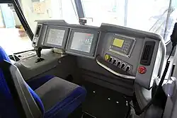 Pulpit motorniczego jest wyposażony w podstawową grupę urządzeń służących do prowadzenia pojazdu[4]. Sterowanie odbywa się za pomocą klasycznej dźwigni nastawnika jazdy, zestawu przycisków i dwóch dotykowych wyświetlaczy ciekłokrystalicznych[19].