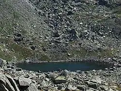 ![]() Niżni Kozi Staw, ponad nim Grań Baszt. W dolnym lewym rogu Capi Staw | |