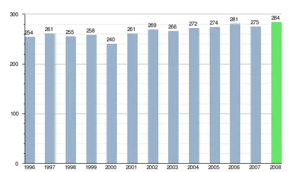 Według danych z dnia 31 grudnia 2012, wieś zamieszkiwało 279 osób, w tym 142 kobiety i 137 mężczyzn[6].
